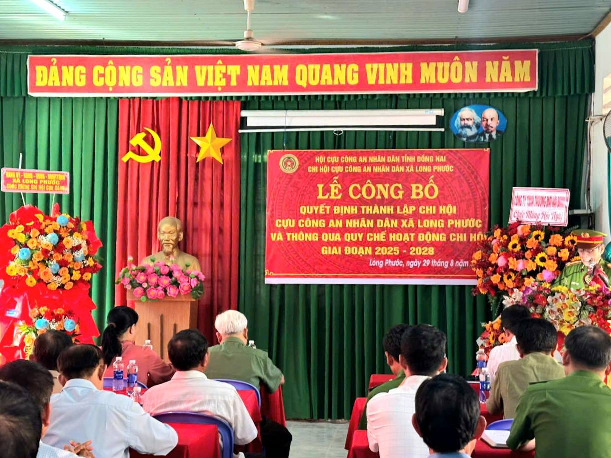 Ngày 29/8/2025, Ban Chấp hành Hội Cựu Công an nhân dân xã Long Phước phối hợp cùng Công an xã Long Phước tổ chức Lễ công bố quyết định thành lập Hội Cựu Công an nhân dân xã Long Phước.