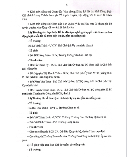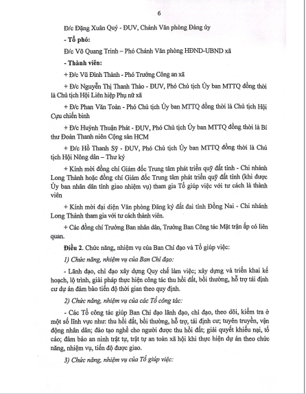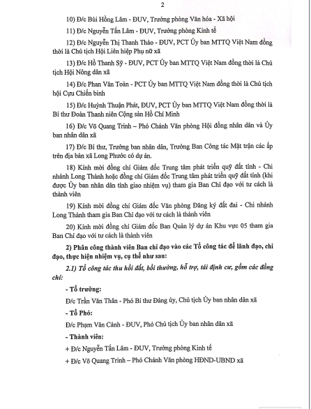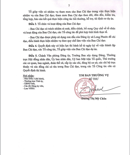 Quyết định về việc thành lập Ban chỉ đạo, các tổ công tác, tổ giúp việc của Ban chit đạo thu hồi đất, bồi thường, hổ trợ tái định cư các dự án trên địa bàn xã Long Phước.
