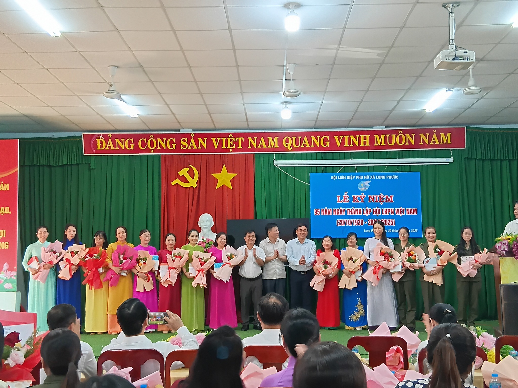 Hôm nay ngày 20 tháng 10 năm 2025, UBND xã Long Phước đã long trọng tổ chức buổi họp mặt kỷ niệm 95 năm Ngày thành lập Hội LHPN Việt Nam (20/10/1930 – 20/10/2025) và Ngày Phụ nữ Việt Nam 20/10. Buổi lễ là dịp để ôn lại truyền thống vẻ vang, tôn vinh những đóng góp to lớn của phụ nữ Long Phước nói riêng và phụ nữ Việt Nam nói chung trong công cuộc xây dựng và bảo vệ Tổ quốc.