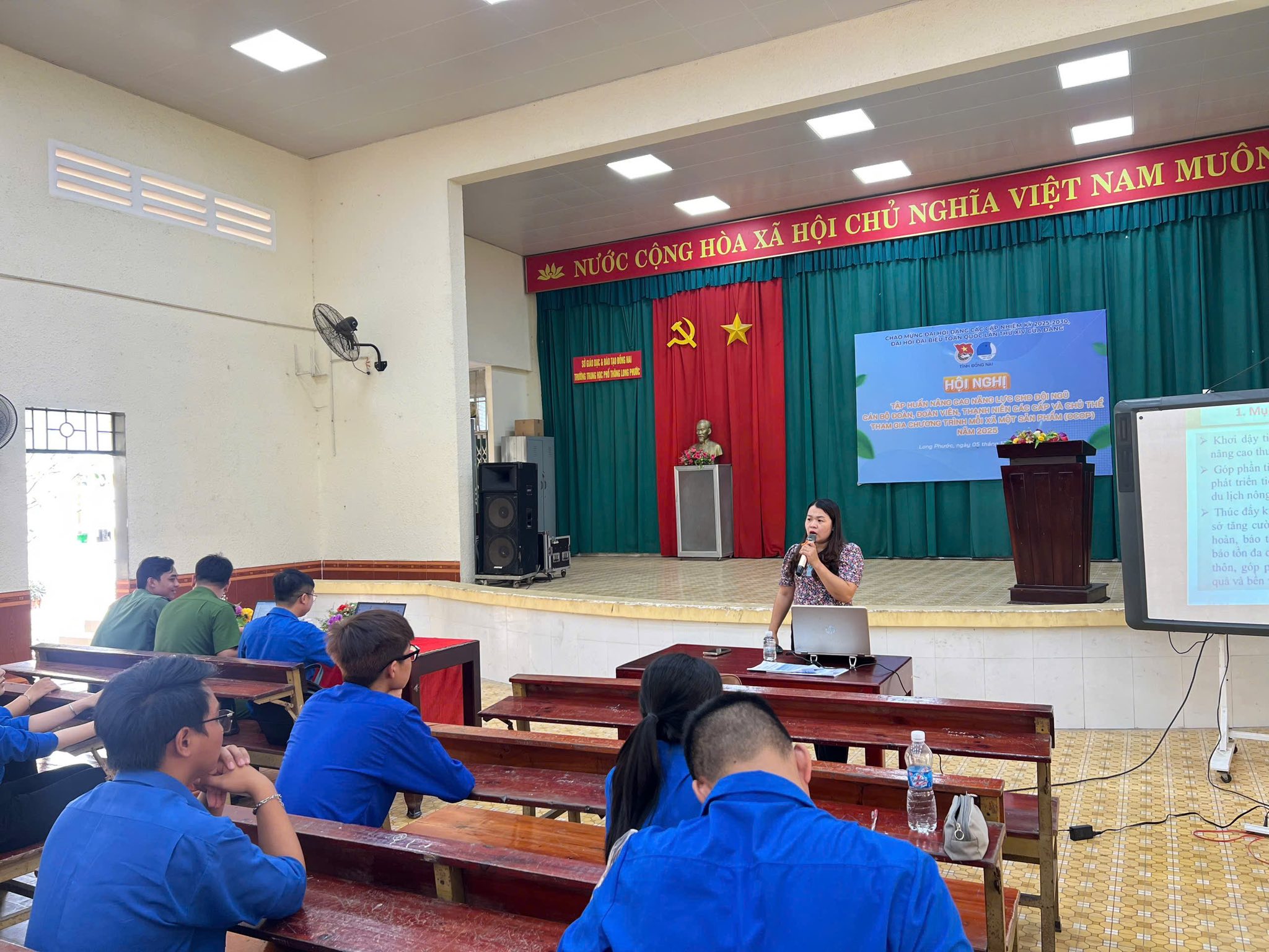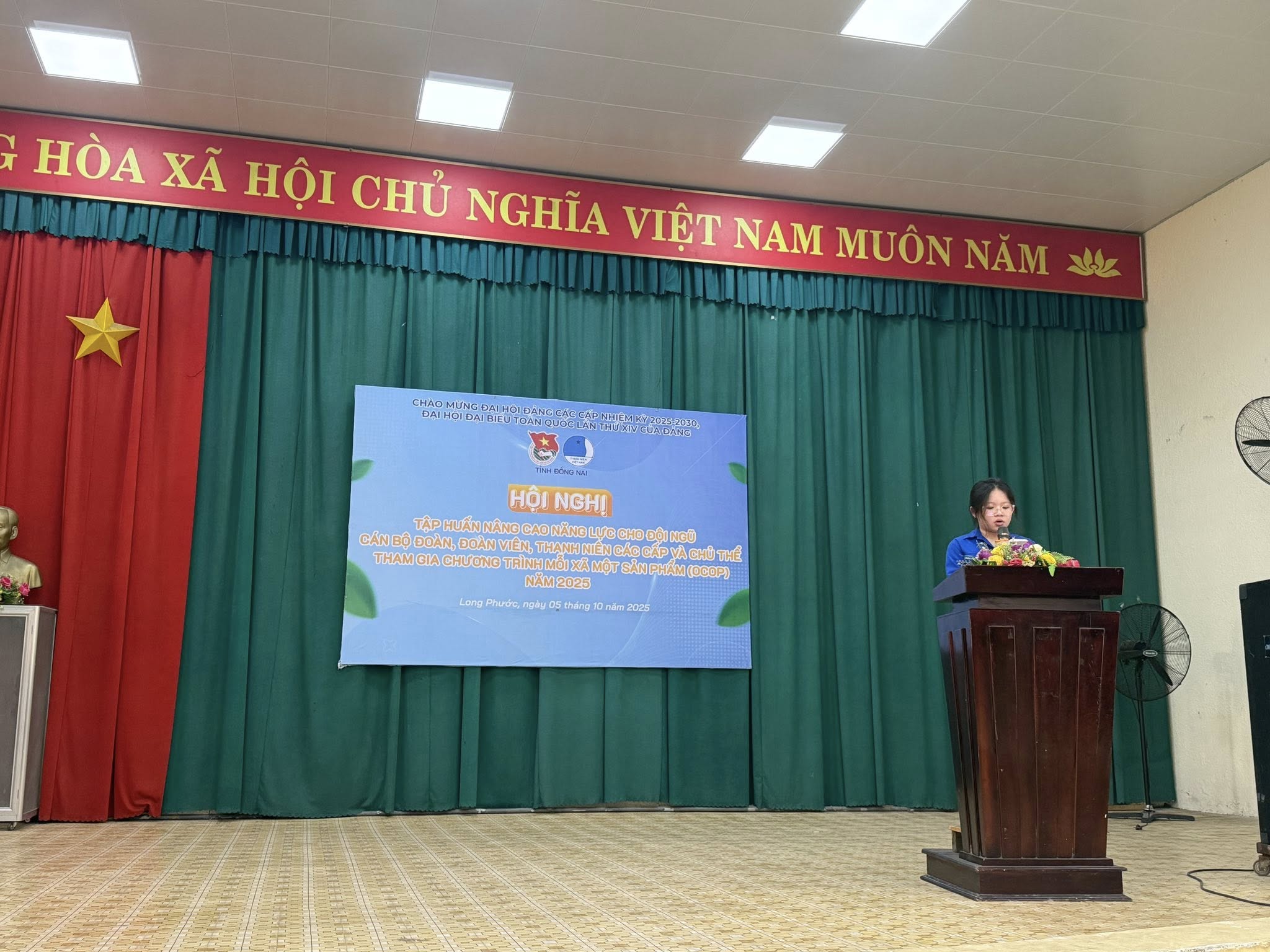Chiều ngày 05/10/2025, Ban Thường Vụ Đoàn xã phối hợp Tỉnh đoàn, Hội Liên hiệp Thanh niên Việt Nam tỉnh tổ chức Hội nghị tập huấn nâng cao năng lực cho đội ngũ cán bộ Đoàn, đoàn viên, thanh niên các cấp và chủ thể tham gia Chương trình Mỗi xã một sản phẩm (OCOP) năm 2025 tại Hội trường THPT Long Phước xã Long Phước với sự tham dự của hơn 150 đoàn viên, thanh niên tại địa phương.