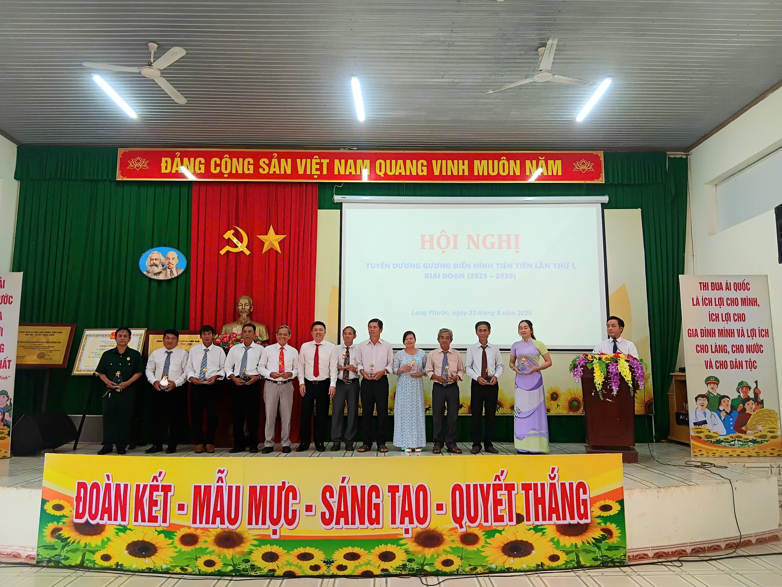Phát biểu tại hội nghị, lãnh đạo xã Long Phước đã nhiệt liệt chúc mừng và biểu dương các điển hình tiên tiến. Đồng thời, kêu gọi toàn thể cán bộ và nhân dân tiếp tục phát huy những thành tích đã đạt được, đoàn kết, sáng tạo, hăng hái thi đua, quyết tâm thực hiện thắng lợi các mục tiêu, nhiệm vụ phát triển kinh tế - xã hội giai đoạn 2025-2030, xây dựng quê hương Long Phước ngày càng giàu đẹp, văn minh, quyết tâm đưa Long Phước trở thành đô thị.